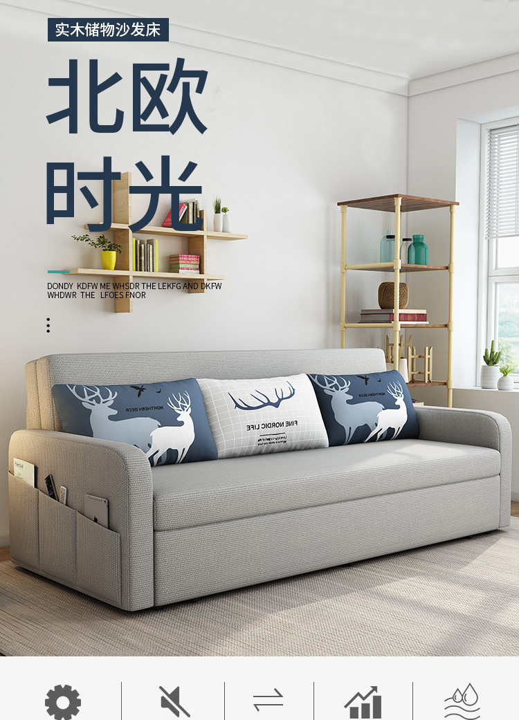 商品名称:澳诺澜 沙发床两用客厅小户型多功能沙发床实木沙发可储物可折叠 1.2米高密度海绵款