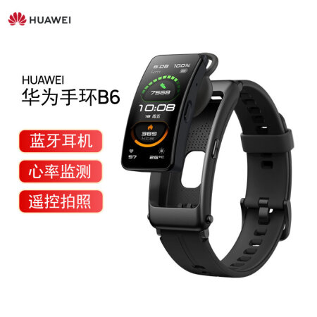 华为手环B6 运动手环 智能手环 蓝牙耳机/心率监测/触控/遥控拍照/扫码支付/Android&IOS 运动款曜石黑